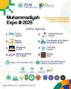 JAKARTA – Pimpinan Cabang Muhammadiyah (PCM) Kebayoran Lama kembali akan menggelar perhelatan akbar tahunan, Muhammadiyah Expo III 2025. Kegiatan ini dijadwalkan berlangsung pada Sabtu, 22